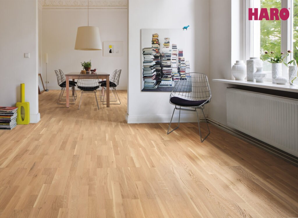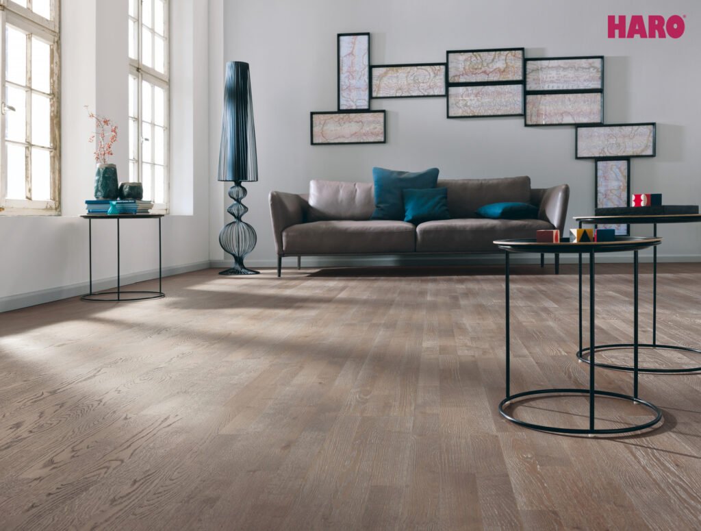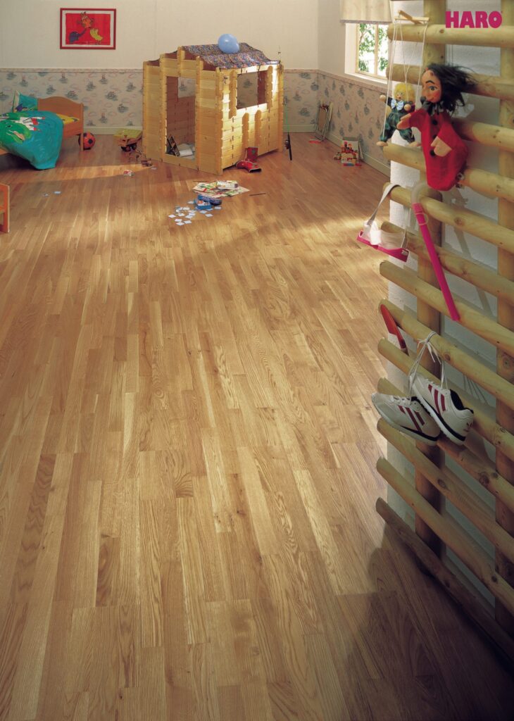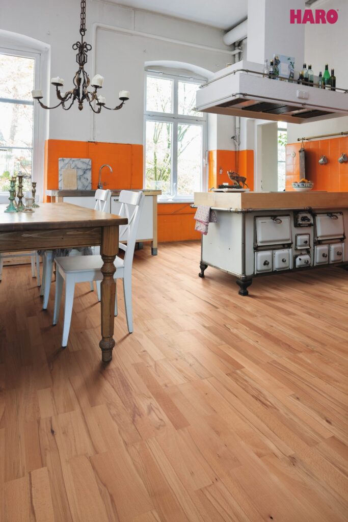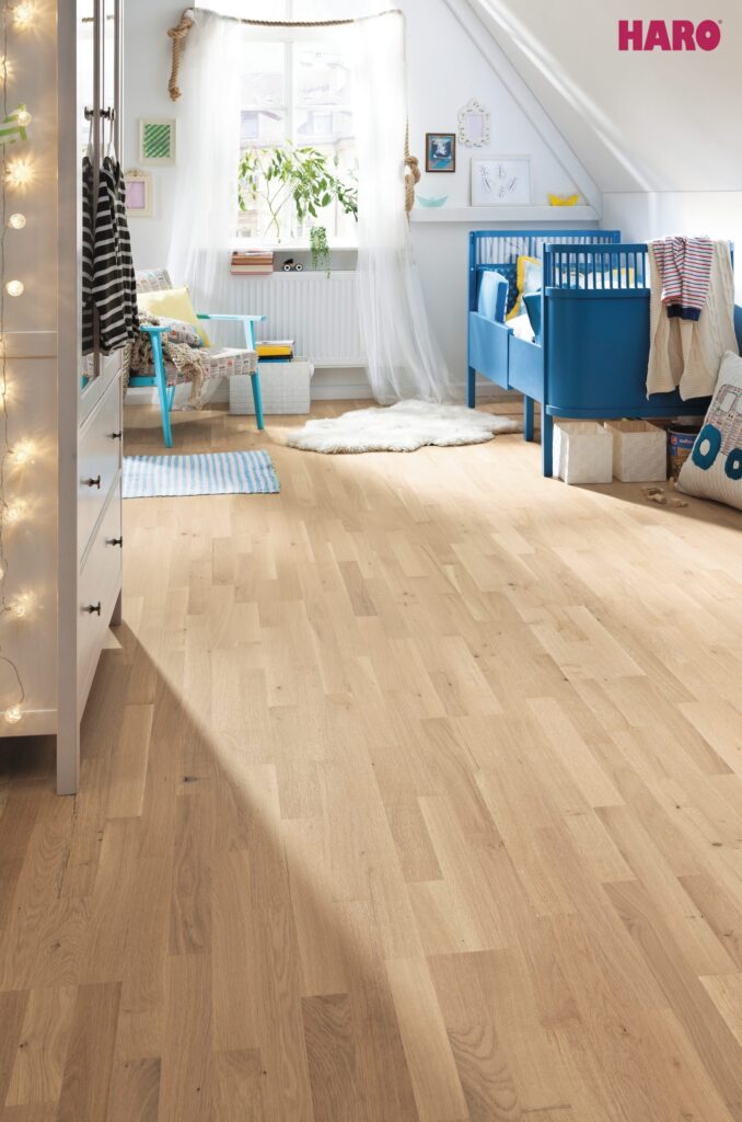 Undgå overdreven fugt, brug filtpuder under møbler og vedligehold gulvet regelmæssigt – så holder det sig smukt i mange år.