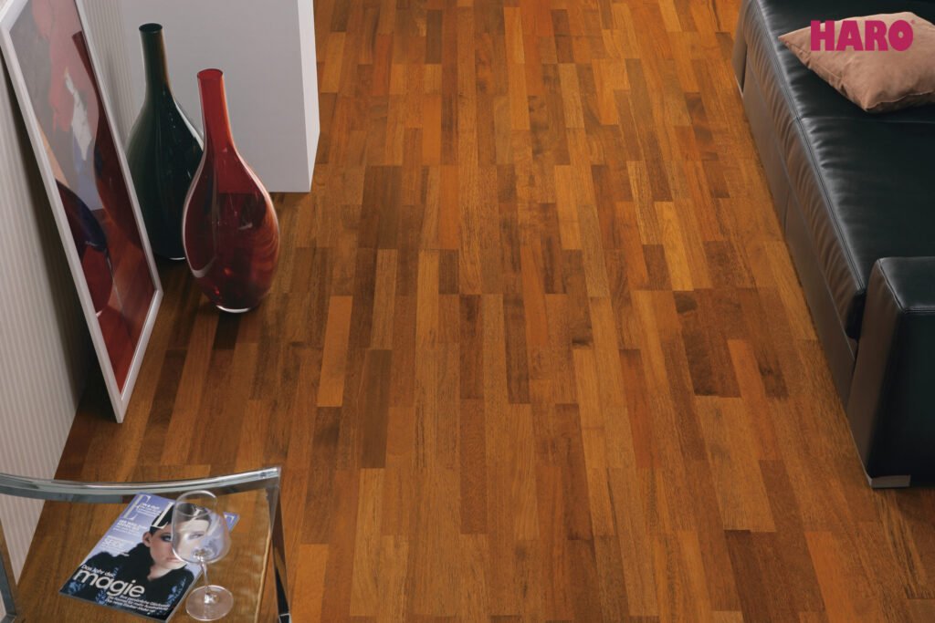 Undgå overdreven fugt, brug filtpuder under møbler og vedligehold gulvet regelmæssigt – så holder det sig smukt i mange år.